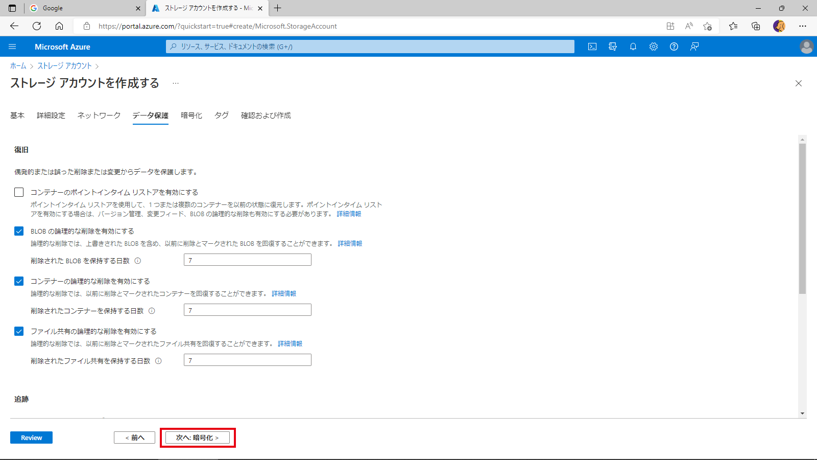 - 冗長性:ローカル冗長ストレージ (LRS) を選択。