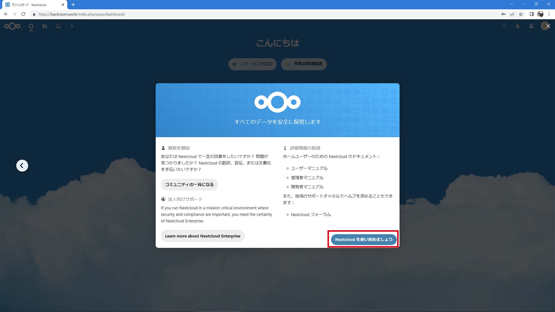ここでは「https://backroom.work/setup-nextcloud.php」になります。